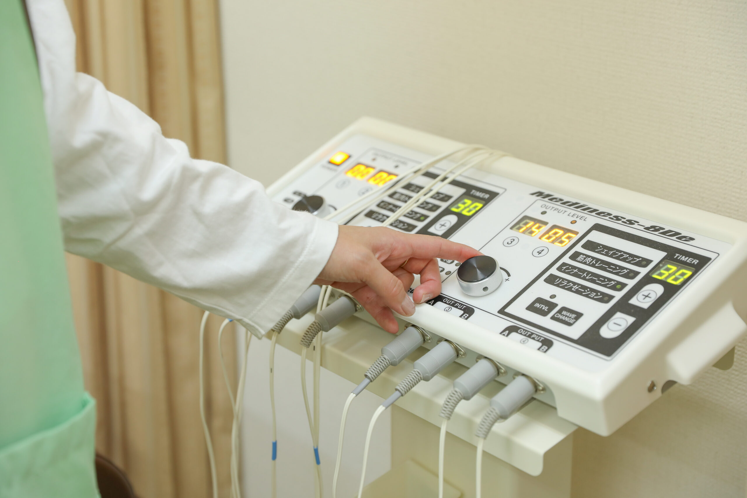 出力は30段階あり、院長の私が服の上からお腹や腸腰筋の動きを確認しながら、その方に最適な数値に合わせますので安心して受けていただけます。