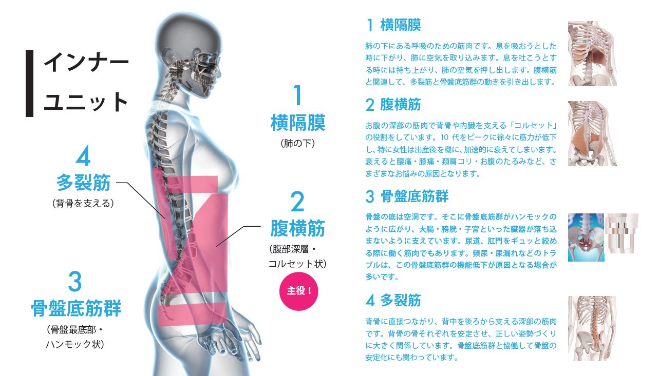 これらの不調の背景には、インナーマッスル(深層筋)の弱さが関わっていることが多くあります。