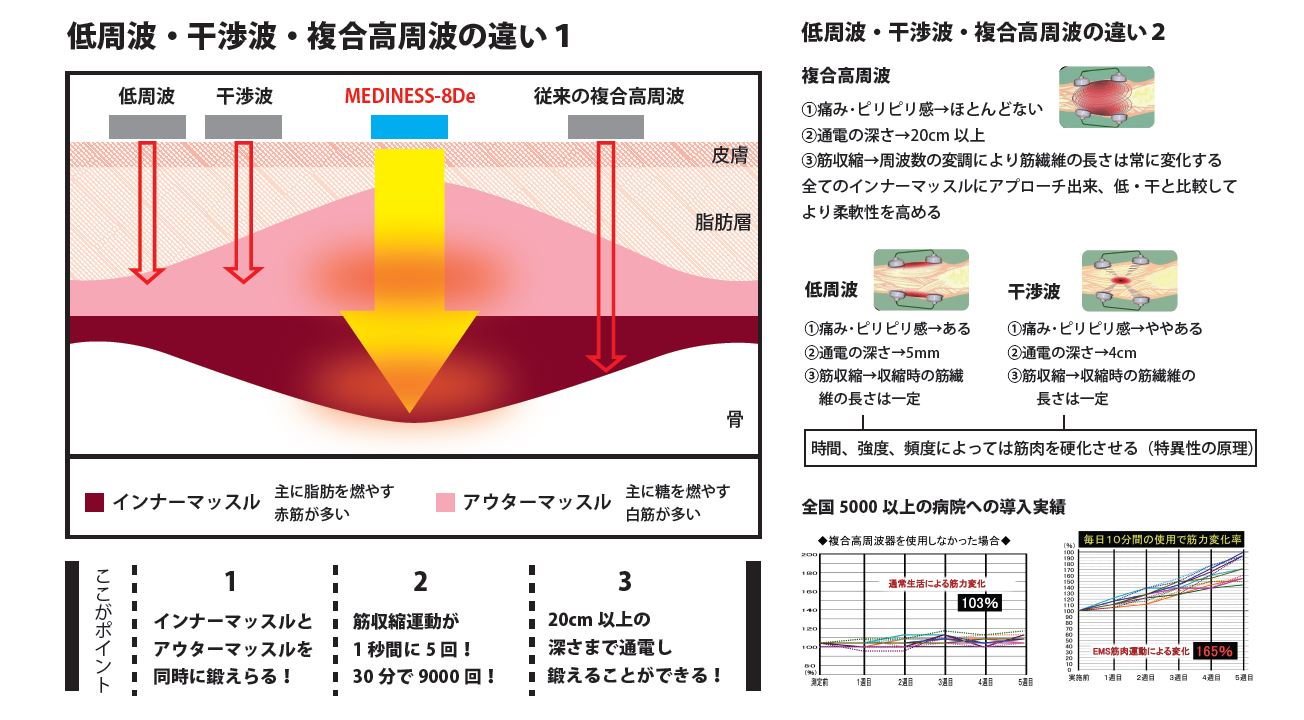 普段の運動では届きにくいインナーマッスルを電気で収縮させ、効率的に鍛えることができます。