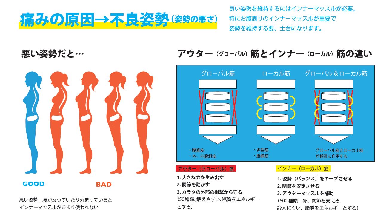 いくら痛みを取り除いても、体幹が弱いままでは再び不調を繰り返してしまいます。
