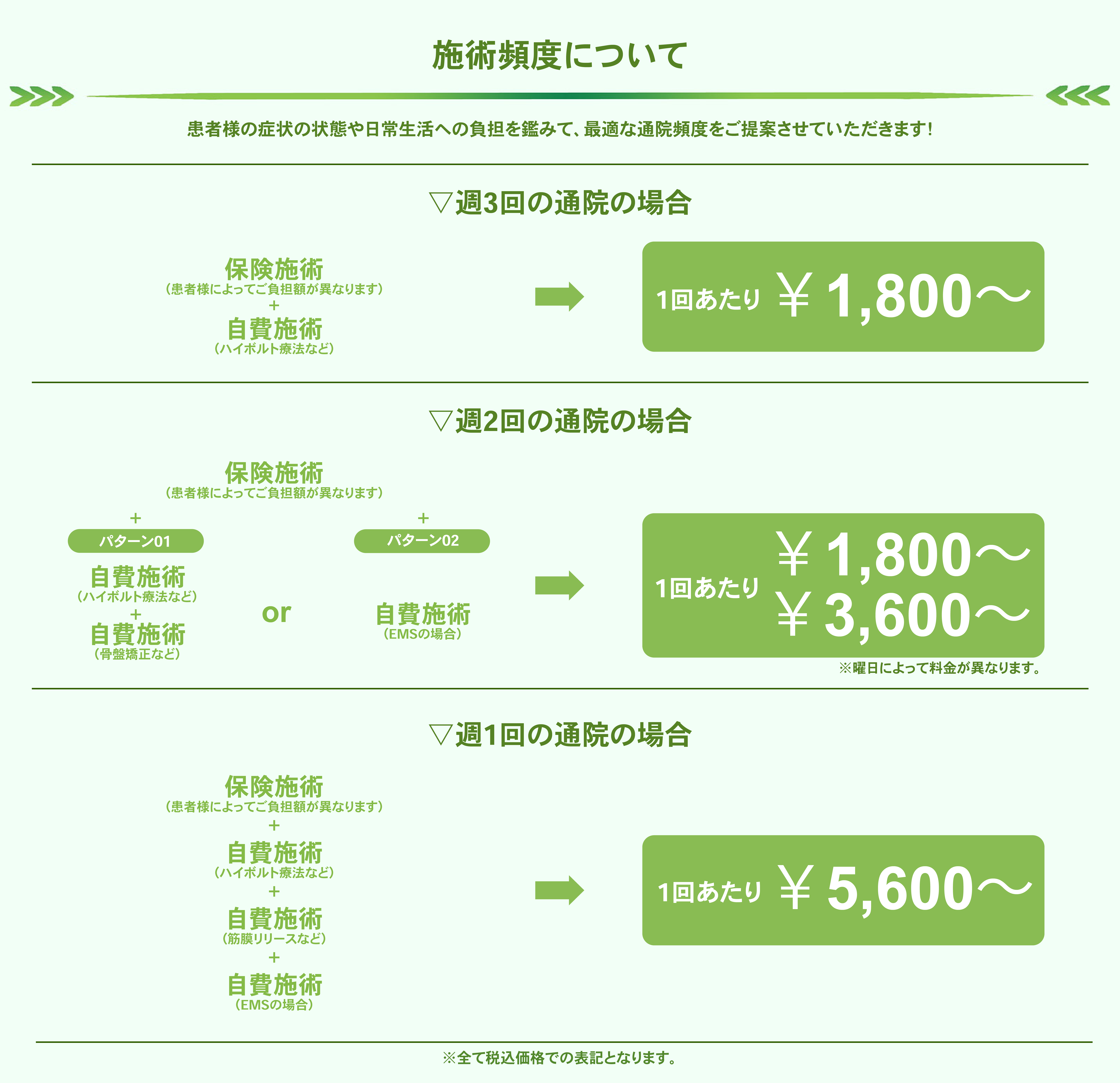 当院の料金は「通院頻度によって変わる仕組み」になっています。